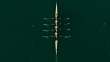 Aerial shot following a quad scull gliding across a lake. Shot in Slovenia.