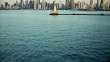 Aerial sunrise Reveal view of Lake Michigan Lighthouse harbor Waterfront Navy Pier and marina Chicago skyline city Skyscraper buildings America RED DRAGON