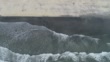 Aerial view. Beautiful beach where sea meet with sand and happy people. - 4K stock video