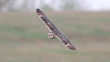 Bird - Short-eared Owl ( Asio flammeus ) flying over the meadow looking for prey on a spring evening. Slow motion.