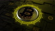 Abstract animation of Bitcoin icon in digital cyberspace. Dollar digital cryptocurrency intro. Digital Data Network Protection, Future Technology Network Concept.