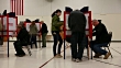 11082016 - Bloomington, Indiana, USA: Voters cast their ballots at St. John's Catholic Church on Election Day 2016. The church had a line of over 100 voters in line by 5:45 a.m., and the polls opened at 6 a.m. Election officials are expecting a record turnout that will surpass 2008 record.
