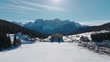 A drone view of the frozen Lake Misurina, blanketed in snow, in Misurina, Italy, on February 4, 2024. Lake Misurina is the largest natural lake in Cadore and is situated at an altitude of 1,754 meters above sea level, near Auronzo di Cadore (Belluno). (Footage by Manuel Romano/NurPhoto via Getty Images)
