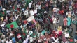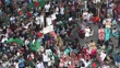 DHAKA, BANGLADESH - JULY 7: In an aerial view, students and job seekers advocating against quotas for government jobs protest by blocking a road at Shahbagh Square on July 7, 2024, in Dhaka, Bangladesh. The demonstration calls for the reinstatement of the Bangladeshi Government's 2018 circular that eliminated the quota system in government services. (Footage by Palash Khan/Getty Images)