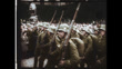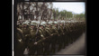 In the middle of the street, crowds of people gather to watch Wehrmacht / German Army soldiers riding on horseback. Followed by German Army soldiers marching during the re-occupation of the Rheinland. Later, German dictator Adolf Hitler is shown at a rally delivering a speech. Germany, 1936. On 7 March 1936 German troops re-occupied the Rhineland, a de-militarised zone according to the Treaty of Versailles. This action was directly against the terms which Germany had accepted after the First World War.Adolf Hitler was an Austrian-born German politician who was the dictator of Nazi Germany from 1933 until his suicide in 1945. He rose to power as the leader of the Nazi Party, becoming the chancellor in 1933 and then taking the title of Führer und Reichskanzler in 1934.