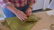 Mature woman hands tying hallaca, Venezuelan traditional Christmas food.