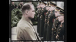 Prior to his flight to Britain in 1941, Deputy Führer of the Nazi Party Rudolf Hess shakes hands with several German military officers. Followed by post-V-E Day footage of German Air Marshal Hermann Göring shown surrendering to Allied officials, and handing over his gun and holster. Later, Field Marshal Gerd von Rundstedt, now also a captive of the Allies, stands outside a building in front of the camera. Germany, 1945. Hermann Wilhelm Göring was a German politician, military leader, and convicted war criminal. He was one of the most powerful figures in the Nazi Party, which governed Germany from 1933 to 1945. A veteran World War I fighter pilot ace, Göring was a recipient of the Pour le Mérite.Rudolf Walter Richard Hess was a German politician and a leading member of the Nazi Party in Nazi Germany. Appointed Deputy Führer to Adolf Hitler in 1933, Hess held that position until 1941, when he flew solo to Scotland in an attempt to negotiate the United Kingdom's exit from the Second World War.Karl Rudolf Gerd von Rundstedt was a German Generalfeldmarschall in the Heer of Nazi Germany during World War II. Born into a Prussian family with a long military tradition, von Rundstedt entered the Prussian Army in 1892. During World War I, he served mainly as a staff officer. Colorized content.