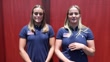 LOS ANGELES, CALIFORNIA - MAY 30: (INTERVIEW) Ryann Neushul speaks about what she learned from the experienced players, as Jewel Roemer (L) stands by, after USA Water Polo announced the 2024 U.S. Olympic Women's Water Polo Team roster at Republique on May 30, 2024 in Los Angeles, California. (Footage by Kaelin Mendez/Getty Images)