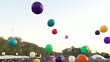 MS TS POV Shot of Festival crowd hitting multi-colour big balloons into sky / Victoria Park, London, United Kingdom - HD stock video