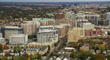 Helicopter shot of Arlington, Virginia on a hazy afternoon in Fall.