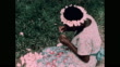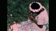 1950s: lady makes garland of flowers on grass. Men bring circle towards shore Fish inside circle. Men catch fish with net. Men drive fish towards shore